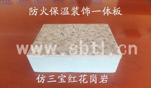 仿三寶紅花崗巖防火保溫裝飾一體板是集環(huán)保、防火、保溫、隔熱、裝飾為一體的新型內(nèi)外墻建筑裝飾板材。采用本廠獨(dú)家生產(chǎn)的理石漆、砂巖漆、真石漆、金屬漆、氟碳漆、藝術(shù)質(zhì)感涂料等高性能涂料作為裝飾層;采用保溫功能極強(qiáng)的苯板、擠塑板、酚醛板和A級(jí)防火保溫板材如:STP超薄防火絕熱板、A級(jí)復(fù)合脲醛樹(shù)脂防火板、硅酸鈣板、發(fā)泡水泥板、A級(jí)改型聚氨酯防火板、無(wú)機(jī)樹(shù)脂防火板等作為芯板及背復(fù)材料、加強(qiáng)材料經(jīng)特殊技術(shù)復(fù)合而成并且全程機(jī)械化生產(chǎn)。
