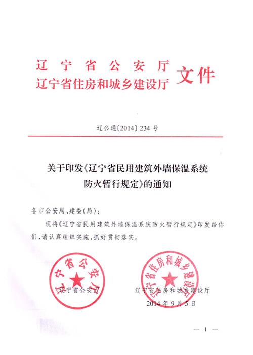 《遼寧省民用建筑外墻保溫系統(tǒng)防火暫行規(guī)定》通知