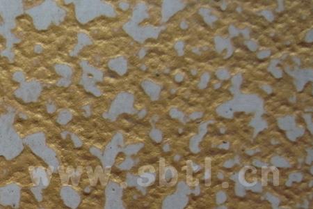 彩砂涂料是以丙烯酸共聚乳液為膠粘劑,由高溫燃結(jié)的彩色陶瓷?;蛞蕴烊粠氖甲鳛楣橇希饧犹砑觿┑榷喾N助劑配置而成。該涂料無(wú)毒,無(wú)溶劑污染,快干,不燃,耐強(qiáng)光,不褪色,耐污染性能好。利用骨料的不同組配可以使深層色彩形成不同層次,取得類似天然石材的豐富色彩的質(zhì)感。彩砂涂料的品種有單色和復(fù)色兩種。單色:粉紅、鐵紅、紫色咖啡、棕色、黃色、綠色、棕黃色、黑色等系列;復(fù)色:由單色組成,形成一種基色,還可附以其他顏色的斑點(diǎn),質(zhì)感更加豐富。彩砂涂料主要用于各種板材及水泥砂漿抹面的外墻面裝飾。