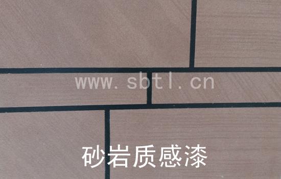 砂巖質(zhì)感漆:刮膩?zhàn)铀⒌灼?,刷劃線漆,打格分線,刮砂巖質(zhì)感漆主料,去美紋紙,畫(huà)砂巖紋理,刷憎水罩光漆