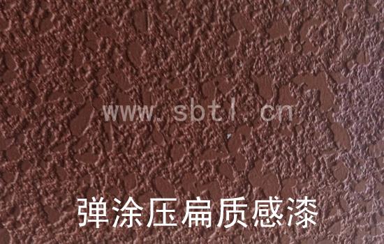 彈涂壓扁質(zhì)感漆:刮膩?zhàn)铀⒌灼?,用噴槍噴出花點(diǎn),然后刮板把點(diǎn)壓扁,干燥后刷乳膠漆或金屬漆,最后刷憎水罩光漆