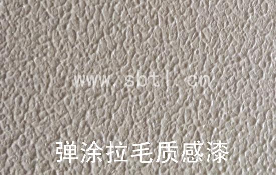 彈涂拉毛質(zhì)感漆:刮彈性拉毛主料,用拉毛滾拉出不同的效果,根據(jù)主料的厚薄和拉毛滾的紋理大小可做出大小不同的拉毛效果。干燥后涂刷乳膠漆,最后刷憎水罩光漆