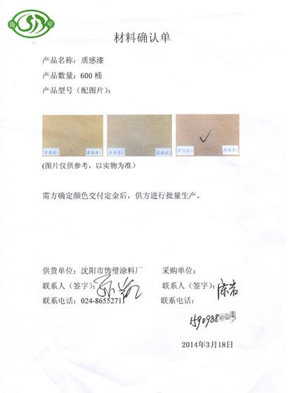 沈陽(yáng)質(zhì)感漆采購(gòu)確認(rèn)單,樣板免費(fèi)送!
