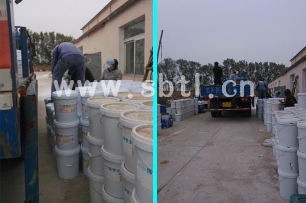 17噸真石漆原材料直送到吉林四平鐵東區(qū)電廠施工現(xiàn)場(chǎng)