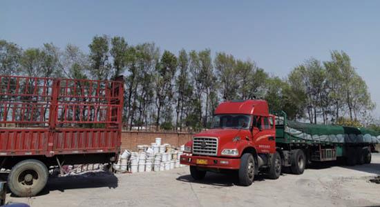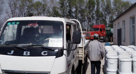 真石漆所需的天然彩砂和真石漆發(fā)貨車輛